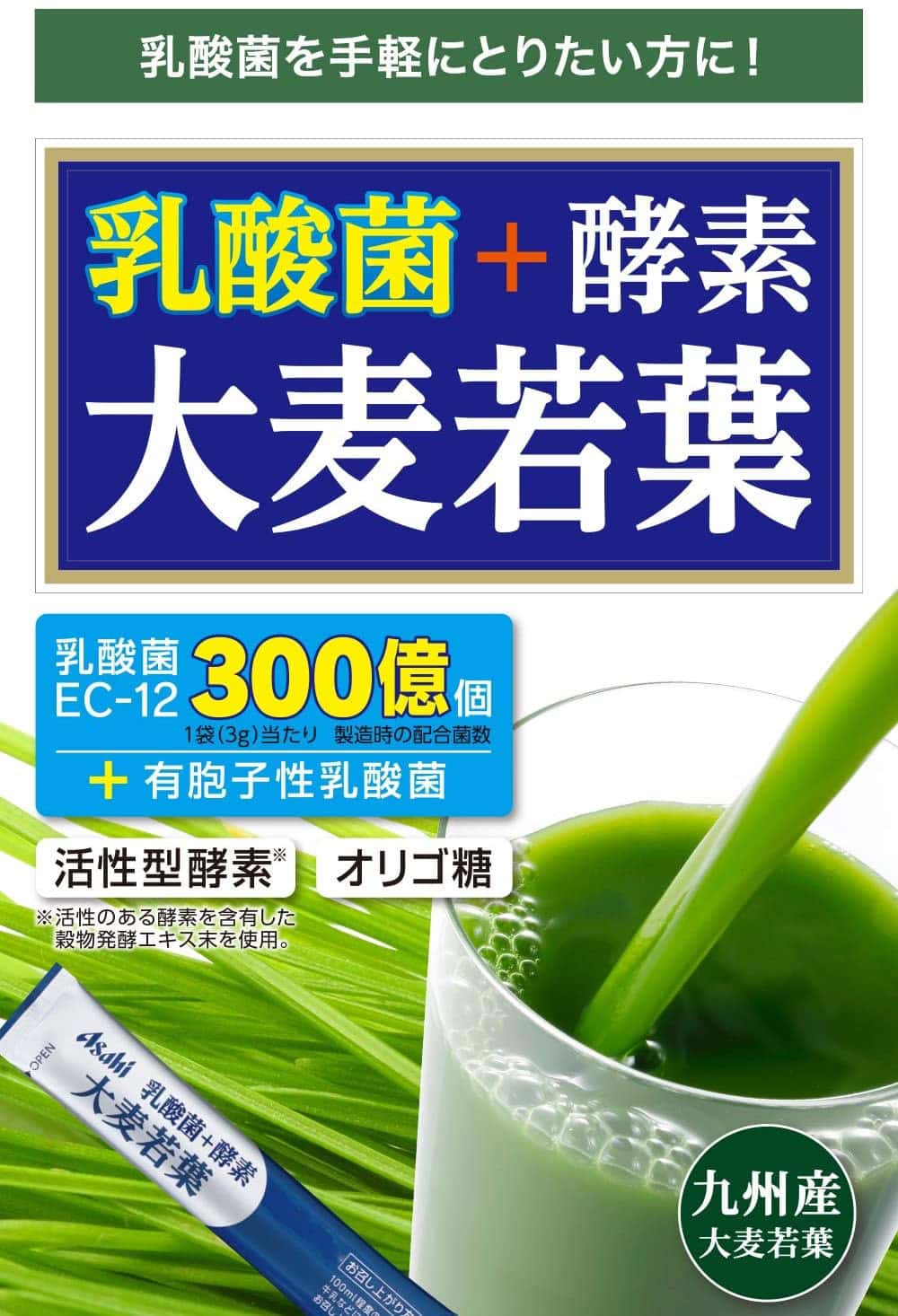 Asahi 朝日 乳酸菌+酵素 大麥若葉 嚴選九州大麥嫩葉,搭配2種乳酸菌、活性酵素與寡糖,口感清爽無異味,天然無添加,健康美味青汁首選。