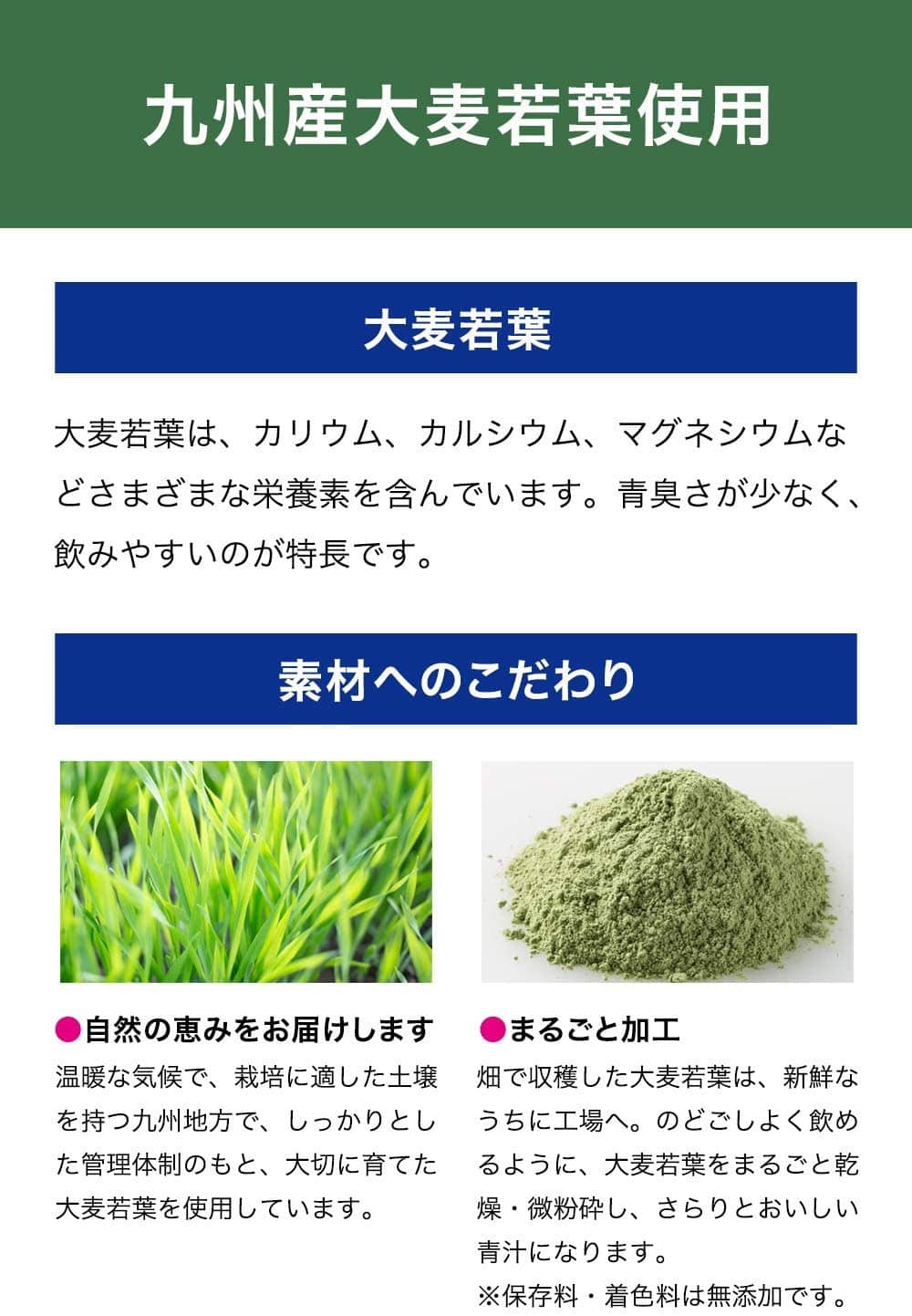 嚴選九州產大麥嫩葉,添加2種乳酸菌、活性型酵素※及寡糖。