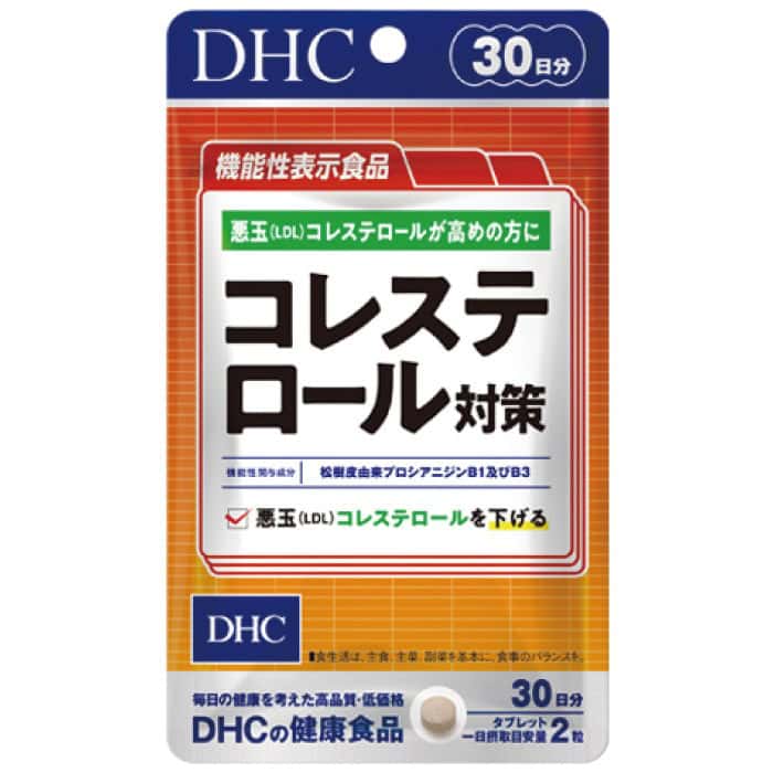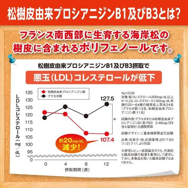 『膽固醇對策』是一款含有報導顯示能降低壞膽固醇(LDL)的松樹皮來源的原花青素B1及B3的機能性標示食品。松樹皮來源的原花青素B1及B3被認為能促進血中膽固醇排出體外,並抑制其吸收。
