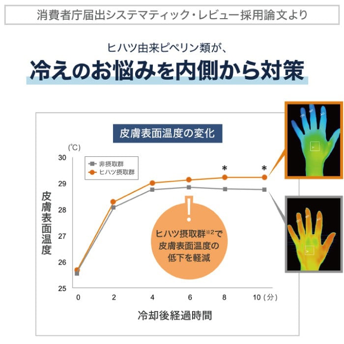 研究表明,來自羅布麻的洋常春藤苷和異槲皮苷有助於提高睡眠質量(包括睡眠深度和起床時的睡眠滿意度)。 來自長胡椒的胡椒碱類則被報告能夠調節因受寒而降低的末梢血流,減輕由於受寒導致的末梢(手部)體溫(皮膚表面溫度)下降。此外,還添加了鹽酸鳥氨酸、乳清蛋白、沙棘提取物、精氨酸等成分。從安穩的夜晚到清爽的早晨,全方位覆蓋。